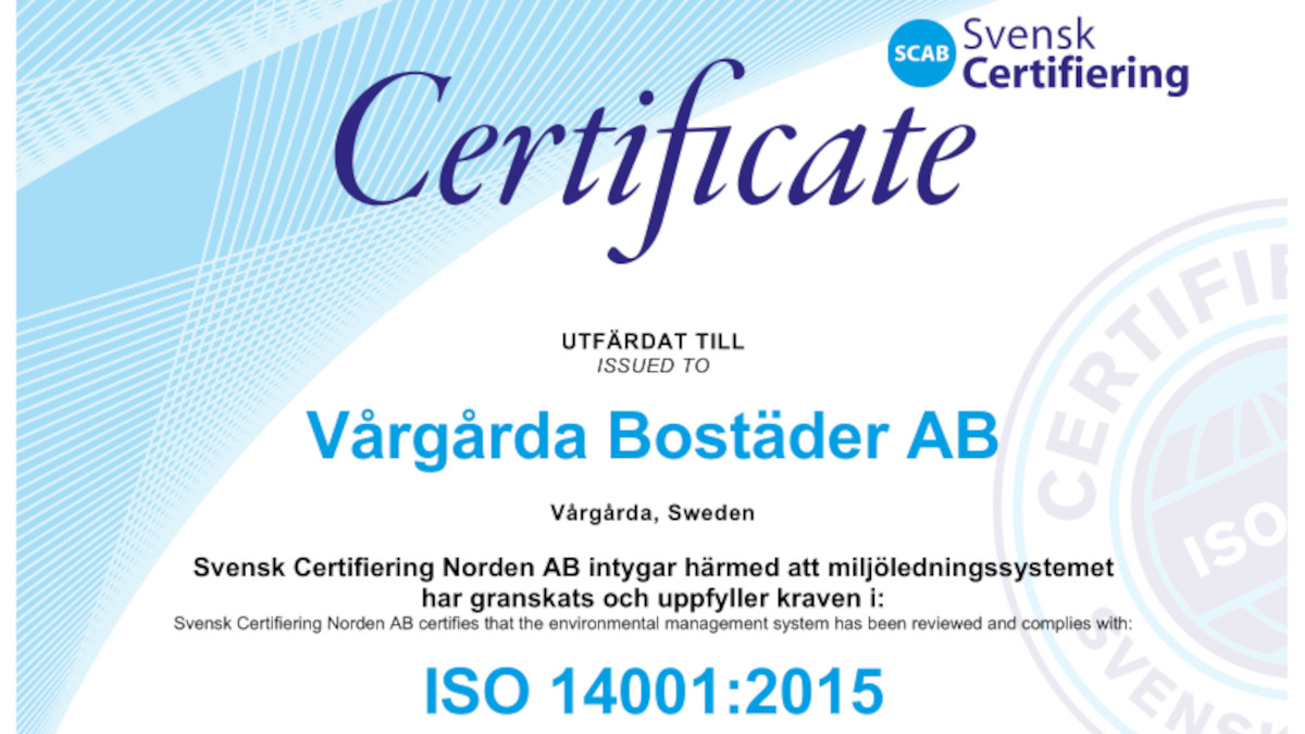 CERTIFIERADE FÖR MILJÖ- LEDNINGSSTANDARDEN